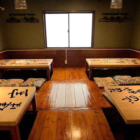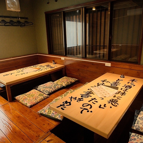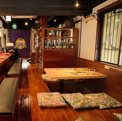 同空間に最大28名様までご案内可能な店内は、会社宴会や模合にぴったり。横一列でも最大16名様まで座れるため、一体感のある宴が叶います。木のぬくもりが心地よい空間には、ふかふかの座布団がご利用できる掘りごたつ席をご用意。まるでお家のように寛げるアットホームな雰囲気の中で、ゆったりとお過ごしいただけます。