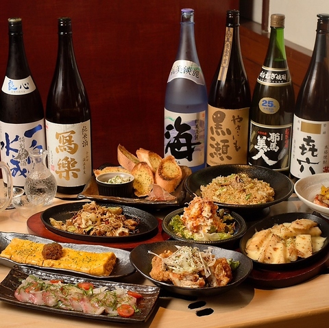 一歩足を踏み入れれば、壁一面に並ぶ泡盛や焼酎のボトルが皆様を歓迎します。テーブルに記された粋なメッセージが、これから始まる美味しいお酒と料理への期待を高めてくれます。広々としたカウンター席は調理の活気を感じられる特等席ですが、大人数なら最大28名様まで対応の掘りごたつ空間がおすすめ。落ち着いた空間でお過ごしください。