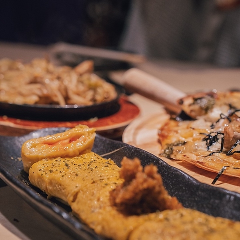 岐阜県出身の店主が修行時代から親しんだ郷土料理「けいちゃん焼き」を、贅沢に沖縄県産鶏でアレンジ。伝統の味噌・醤油ベースに沖縄食材を加えた特製タレは、まさに当店だけのオリジナルです。また、沖縄県産の新鮮な卵を使用した「だし巻き」は、卵本来の甘みと出汁がふんわり広がるやさしい味わい。お酒が進むこだわり料理です。