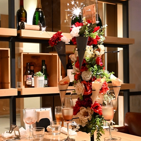 【サプライズのお手伝い☆】恋人や家族、友達の誕生日や記念日に感謝の気持ちを伝えたり、大切な人にお祝いのメッセージを入れたカクテルツリーとデザートを送ります。希望するメッセージ(15文字程度)でご用意いたします!※2営業日前まで・要予約