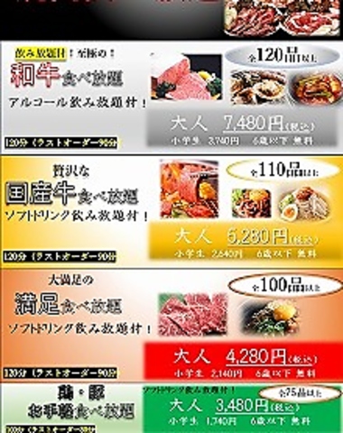 | 食べ放題 | あり :5種類、和牛・国産牛食べ放題 |