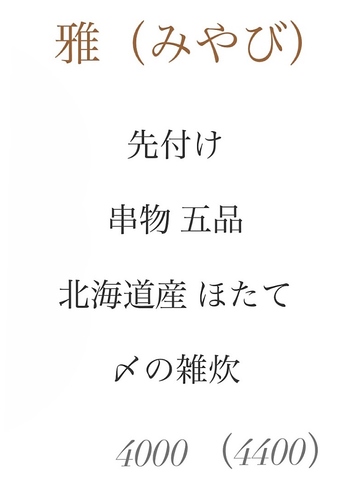 〇コースのみのご案内となります。アラカルトのご用意はございません。