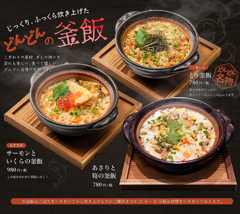出汁から全て手作りで自慢の釜飯。ふっくら炊き上げるのでオープン以来人気メニューとなっております。