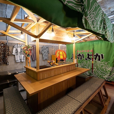 ◆博多の文化である【屋台】を屋内で楽しめる全天候型の屋台横丁!天気も気温も気にせず楽しめる!7名以上の予約で屋台が貸し切りに出来る!貸し切り屋台が2台あるので、宴会での御利用は最大26名様迄ok!◆7名様~屋台の貸切が可能!お子様も大人も『大将ごっこ』が楽しめるので、家族でのご利用もお待ちしています!