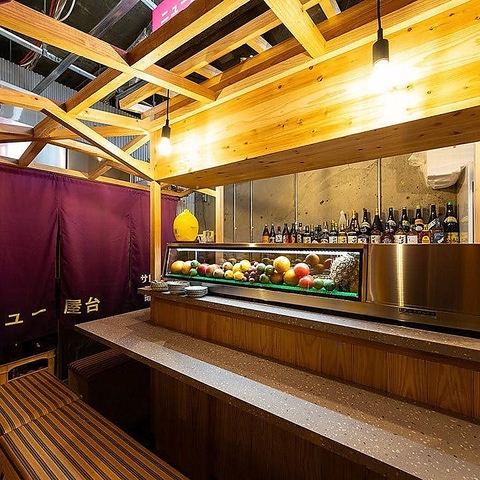 【屋台の常識を覆す!新感覚の屋台横丁】暖簾をくぐると、そこはまるで別世界!店内には6台の屋台がずらりと並んでいます。屋台に馴染みのない方も楽しめるよう、お店づくりには徹底的にこだわりました。周りを気にせずゆっくり過ごしたい方には、個室感覚で利用できる「貸切用屋台」もご用意◎
