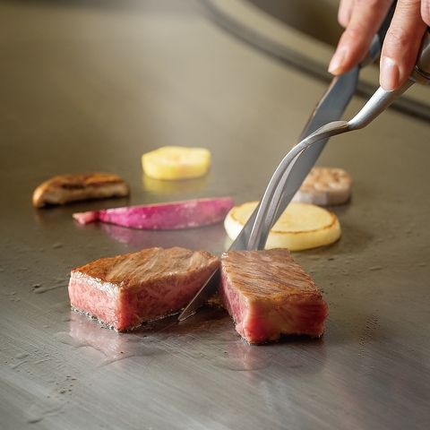 ~創作&お肉コース~ステーキをメインに、和のテイストをプラスしたコース。シェフの華麗な手さばきを見ながらお食事をお楽しみいただけます。