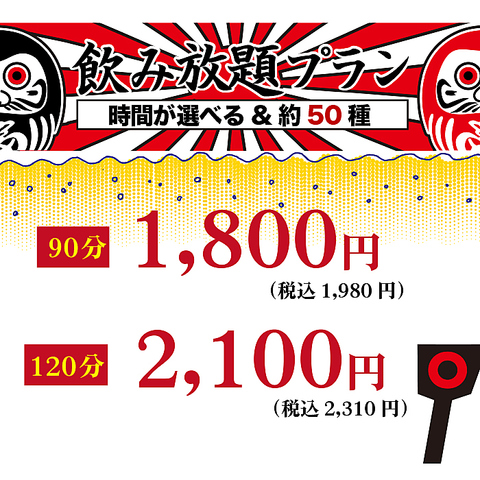 | 飲み放題 | あり :飲み放題90分1980円/120分2310円 |