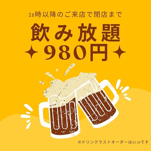 980円お得な飲み放題【12/1~12/25と1月中(日)~(木)】