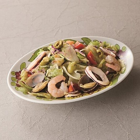 前菜5種盛り合わせ・シェイクdeポテト・チーズまみれのサーモンカルパッチョ・ナポリの料理料理アクアパッツァ・Pizzaシチリアーナ・ルチアーナ風ペスカトーレ・イタリアンジェラートバニラ