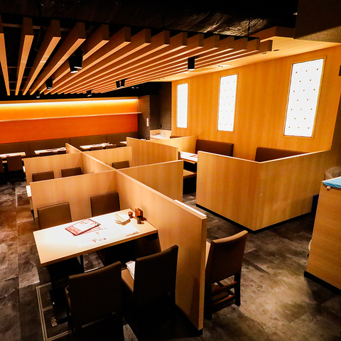 【明るく元気な楽しい店内】活気ある当店はご友人とのご宴会や女子会など、少人数のお集まりにぴったりの囲い付きテーブル席もご用意しております!スタッフ一同、元気で丁寧におもてなしいたします♪初めての方も、常連さんも心よりお待ちしております。