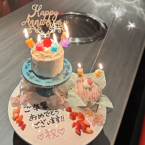 お誕生日や記念日でのお祝いにピッタリのコースも10000円~ご用意しております。山形雪降り和牛4種で作るお肉の花盛り、バースデーケーキプレート、乾杯スパークリング含むフォトジェニックで豪華な内容となっております。ご希望にあわせてメッセージプレートや、サプライズ演出もご対応可能!!お気軽にご相談ください。