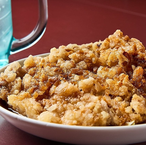 チーズ包み揚げ(5個)/タコ唐揚げ/砂肝唐揚げ/カニクリームコロッケ(3個)/レンコンの挟み揚げ(3個)/しめじの唐揚げ/オニオンリング/なんこつ唐揚げ/鶏肉の唐揚げ/油淋鶏/揚げワンタン/川エビの唐揚げ/レバー揚げ/手羽先の唐揚げ(3個)/エビせんべい/ニンニク丸揚げ(1個)/フライドポテト/ナスの塩胡椒揚げ/春巻(3本)/鶏皮ギョウザ(3個)/大根もち(2個)