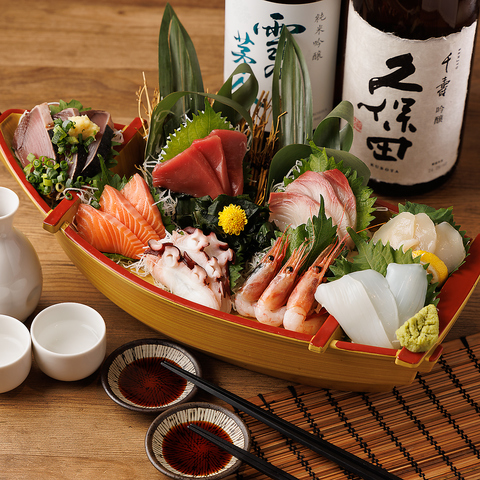 料理長自慢の究極の舟盛り!どこで見つけてきたんだろ...?そうお客様が思わず言葉に出してしまうくらいの大きな舟盛りに余すところなく新鮮な海の幸を豪快に盛りました!品川最大の舟盛りここに登場!