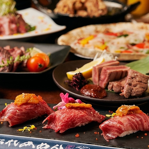 A4等級にいがた和牛を使用した肉寿司は肉の旨みと甘味が口の中で広がります。静岡駅前で個室で肉を楽しむならぶれゑめんで決まり!飲み放題付きのご宴会コースもございます、肉女子会・肉ご宴会などもお任せください!