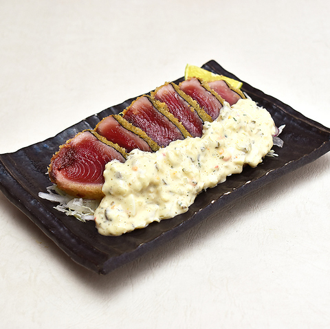 サクッと揚げた肉厚な鰹のレアカツに、タルタルと特製カレーを合わせた新感覚の一皿!カレーのスパイシーさとタルタルのまろやかさが、レアな鰹の旨みを引き立てます。ランチのエネルギーチャージにぴったり◎一度食べたら病みつきになる濃厚な味わいをぜひ♪