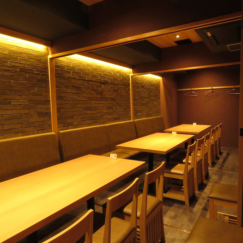 【~18名様。貸切も承ります】柔らかな照明と温かみのある木製テーブルが、まるで隠れ家のような雰囲気を演出。幹事様、日時や人数等、お気軽にご相談ください。早目のご予約をおすすめいたします。