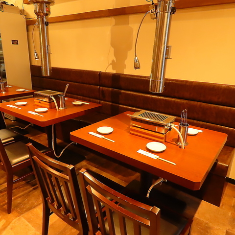 6名様までご利用できるテーブル席のご用意も!お子様連れも歓迎!ご家族でのお食事・女子会やご友人同士など少人数でのお集りの時にオススメです♪テーブル中央のガスコンロでお肉を焼いてお召し上がりください!ゆったりした時間をお楽しみいただけます。