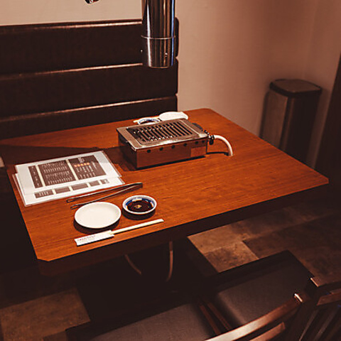 4名様までご利用できるテーブル席がございます!優しい照明と木の温もりを感じる和風の落ち着いた雰囲気。居心地の良い店内ではゆったりとお寛ぎいただきながら美味しい焼肉をお楽しみいただけます♪女子会や少人数での飲み会など、シーンに合わせてお気軽にご利用ください!