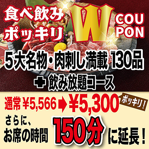 食べ飲み放題の込み込みプランで使用できる、お得なWクーポン各種揃ってます!お値打ちに時間もたっぷり!