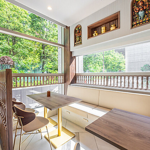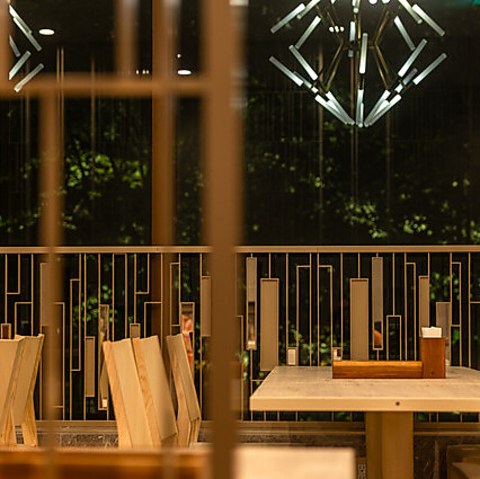 1階テラス席は16席ございます。心地よい風を感じながら、開放感あふれる空間で特別なひとときをお楽しみいただけます。