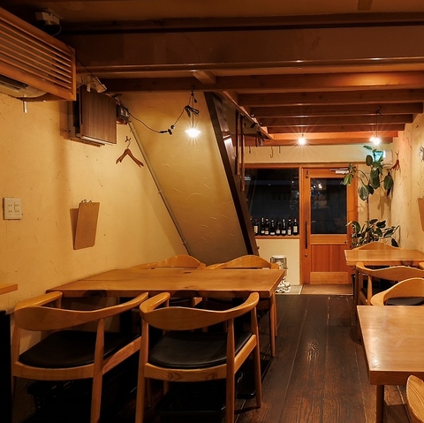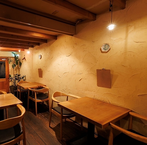 温かみのある木製テーブルが並ぶ2名様席は、大切な方とのデートや友人との語らいにぴったりです。落ち着いた雰囲気の中で、美味しい料理とお酒を囲みながら、心ゆくまで会話をお楽しみいただけます。素敵なひとときをお過ごしください◎