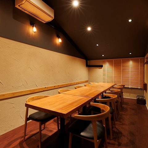 1階のテーブル席は、気の置けないお仲間との飲み会や女子会に最適な、明るく居心地の良い空間です。自然と会話が弾むレイアウトは、楽しいひとときを演出します。さらに、2階には最大10名様までご利用可能な広々としたテーブル席をご用意しており、ご予算に応じたコース料理も承ります。レイアウト変更や貸切にも柔軟に対応いたします◎