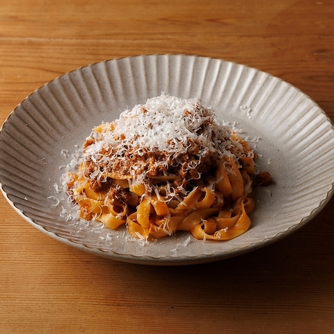 当店の職人が心を込めて手打ちする、こだわりのタリアテッレは、もちもちとした弾力と小麦の豊かな風味が特徴です。手打ち麺に絡むのは、時間をかけてじっくり煮込んだ大和牛のラグーソース。大和牛の旨味が凝縮されたソースは、濃厚でありながらもしつこさがなく、タリアテッレとの相性は抜群。当店自慢の逸品です。