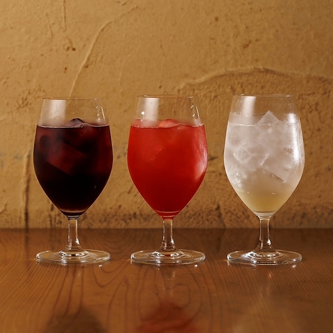 お料理に合わせて気軽に楽しめるグラスワインは、白と赤のスパークリングに加え、まろやかな味わいの白や、しっかりとしたボディの赤をご用意しております。特別な日やグループでのご利用には、ブドウの品種や産地ごとに厳選されたボトルワインがおすすめです。ソムリエ厳選のワインが、当店自慢のお料理の美味しさを一層引き立てます◎