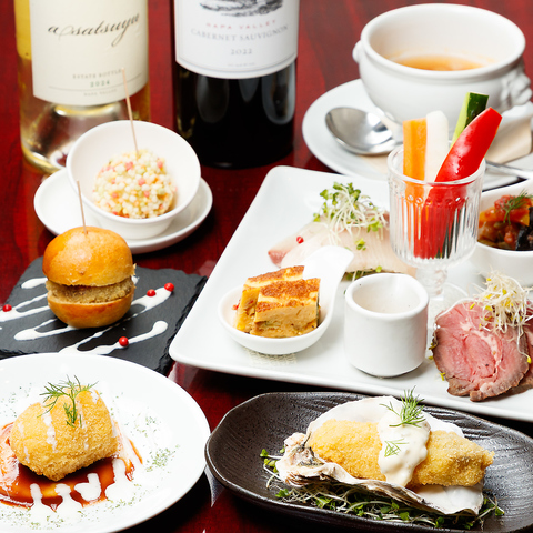 ワインの「ソムリエ・エクセレンス」、日本酒の「酒ディプロマ」、そしてウイスキーの「コニサー・エキスパート」と、多岐にわたる専門資格を持つオーナーシェフが厳選した銘酒をお楽しみいただけます。赤・白・スパークリングを揃えたボトルワインに加え、月替わりのグラスワインも◎お料理や串揚げに合わせたペアリングのご提案も承ります。