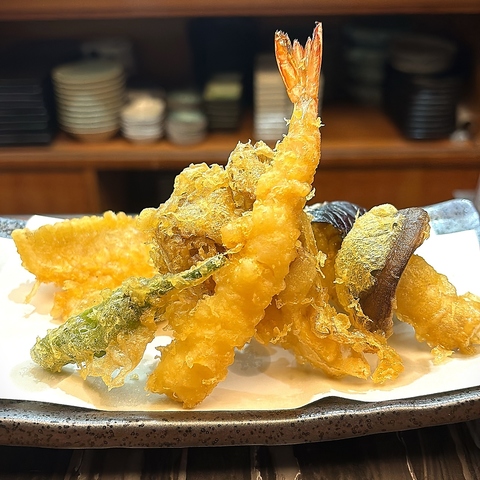 盛り合わせでも、単品でも、揚げたてでご提供◎特に、砂ずりやささみの串天ぷらは、女性に人気です♪