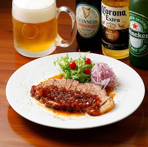自慢の肉を自慢のオニオンソースでお楽しみください。厚切りの歯ごたえある食感も最高です。