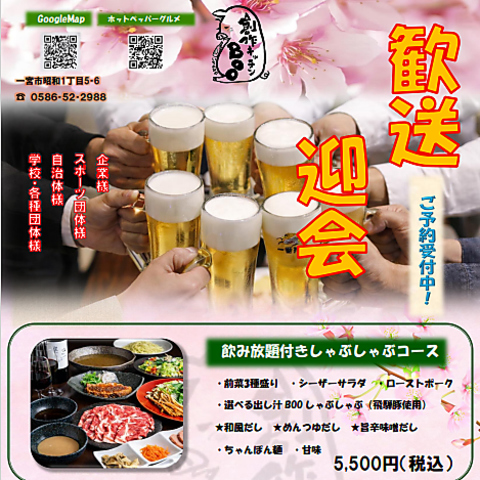 飲み放題付きの選べる3種のしゃぶしゃぶコースを始め、アラカルト中心のBOO特製居酒屋コースもあります◎