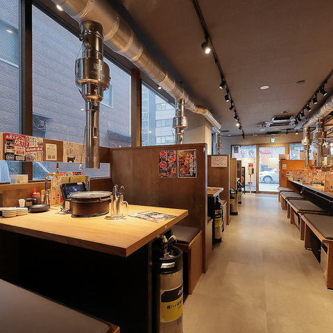 【一人焼肉やデートにもオススメのカウンター席☆】一人焼肉やデートにオススメのカウンター席をご用意!煙が出にくい換気設備を採用しているため、においが服につきにくいのも嬉しいポイント!駅近なので、お仕事帰りにもお気軽にお立ち寄りください!
