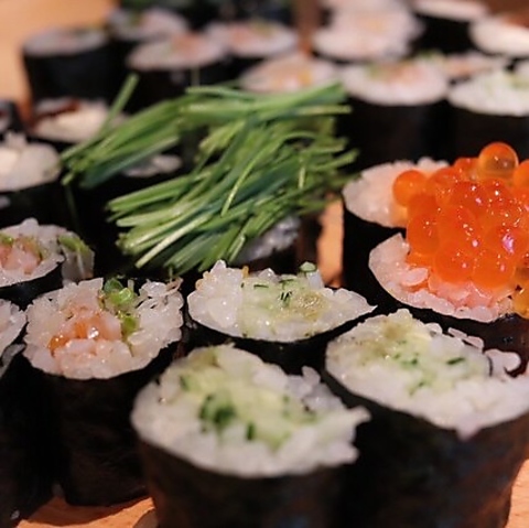 一押しの“あて巻き”は、「壱岐牛のたたきと卵黄ソース巻き」「炙りサーモンといくら巻き」をはじめとした約10種類。そのほかお酒と相性抜群のメニューを多数ご用意しております。