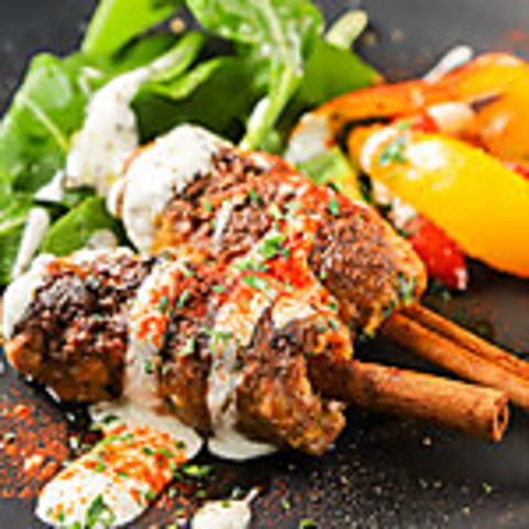 ヨーグルトとハリッサソースでいただく「子羊のミンチの串焼き」をはじめ、ジューシーな肉料理や風味豊かな魚料理など、幅広いメニューをご用意◎季節によってメニューを変えておりますので、旬の食材ならではのしっかりとした旨味をご堪能いただけます。ソムリエ厳選のワインやスパイス焼酎と合わせてお召し上がりください