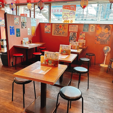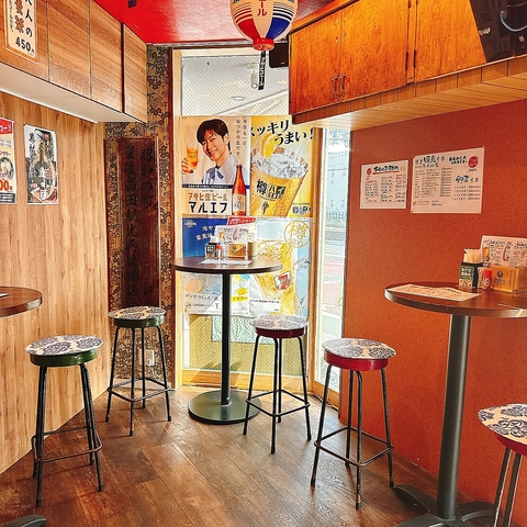 立ち飲みスペース2卓、椅子もご用意しております。サク飲み・サク飯大歓迎!しっぽりお仕事帰りにふらっと立ち寄りもOK!ぜひお気軽にお立ち寄りください。