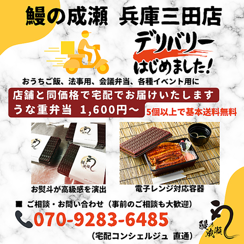 鰻の成瀬 兵庫三田店では、店舗と同価格でデリバリーをはじめました。