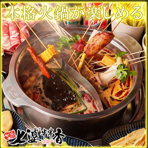 本場の味わいを気軽に楽しめる中華串火鍋の専門店。薬膳を取り入れた自家製スープは、辛さや風味のバランスにこだわっております!!具材は1本80円から選べ、種類も豊富。お好みの組み合わせで“自分だけの火鍋”をお楽しみください。