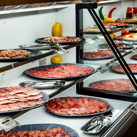 日本全国より仕入れた中から、その日の状態を見て厳選。そんな高品質なブランド牛や和牛を使った焼肉を食べ放題でもお楽しみ頂けます!サーロインなどの希少部位に加え、牛タン・ホルモン・ラム肉など多彩にご用意。また海老や牡蠣、アワビなど海鮮も贅沢にお楽しみいただけるのが当店の自慢。中には赤字覚悟な商品も?!
