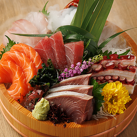 毎日市場から新鮮な魚を仕入れており、15種類前後のお刺身と料理長考案の日替わりメニューをご提供しております。見た目にもこだわった海鮮創作料理は面白い迫力ある見た目なだけでなく、味にもこだわった自慢の逸品♪期間限定メニューやその日限定の希少部位のお料理もご用意しております◎種類豊富な美味しいお酒と自慢の料理をお楽しみ下さい