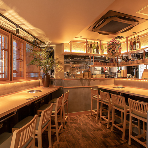 カウンター席ございます。落ち着いた雰囲気で思う存分美味しい焼肉をお愉しみ頂けます!デート・女子会・ご友人や会社仲間との会食・二次会にもピッタリ♪