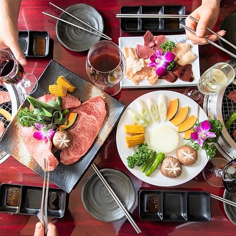 コースによっては厳選A5和牛を使用した焼肉食べ放題コースも御座います。肉質は仕入れの段階からこだわり、職人が一つ一つ丁寧に管理し、最高に美味しい状態でお客様にお届けしております。