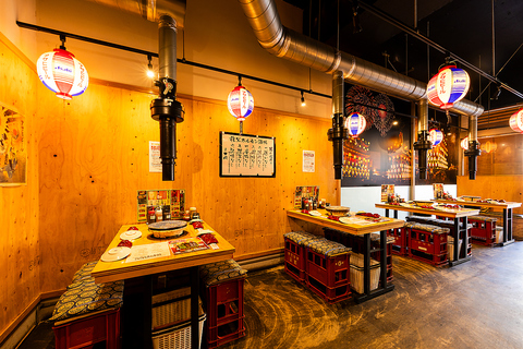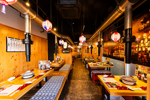 活気あふれる店内は、まるで祭りのようなにぎやかさ!焼き台の前では香ばしい煙と笑い声が立ち上り、仕事帰りの一杯にも仲間との飲み会にもぴったり。テーブル席でわいわい盛り上がり、思わず時間を忘れてしまう、アットホームで活気ある空間です♪