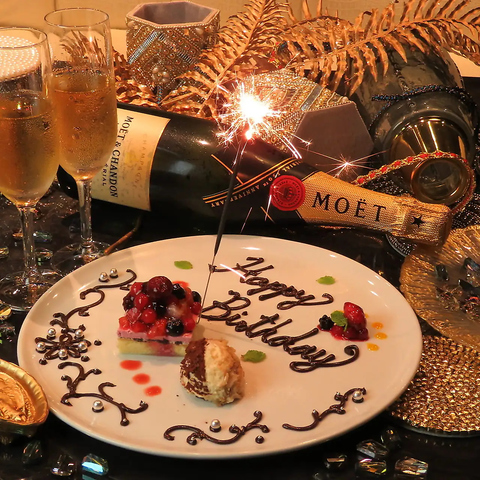 誕生日や記念日にピッタリ!Bee歌舞伎町店メッセージプレート付パーティープランは、4,000円~ご用意しております。2名様から受付可能で、音楽やマイク演出、プレゼントの事前預かりなど主役へのサプライズもおまかせください!経験豊富なスタッフが自信をもってサポートします!単品メッセージプレートも可能です!