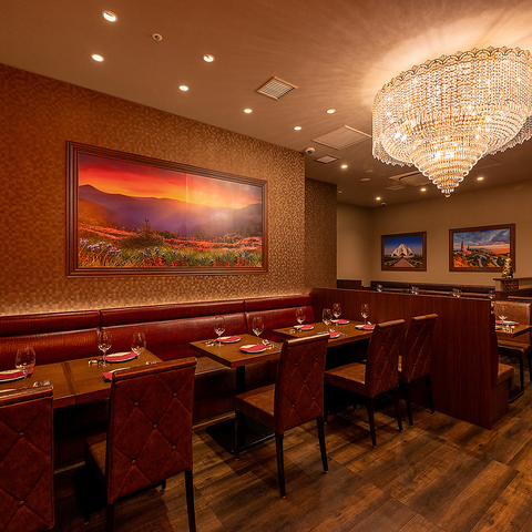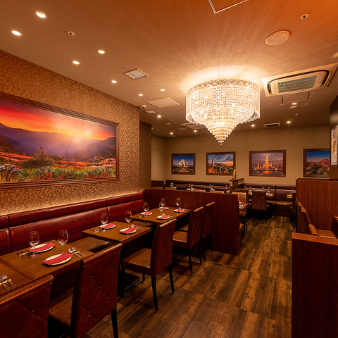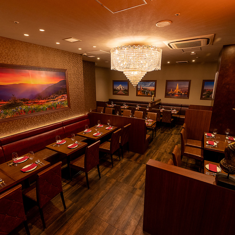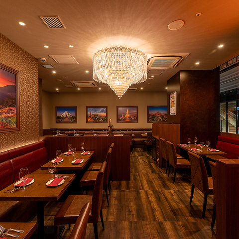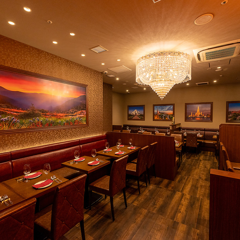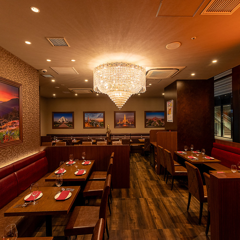 シャンデリアが輝く華やかな店内はアジアのエッセンス漂う特別な空間。非日常を存分にお楽しみください。