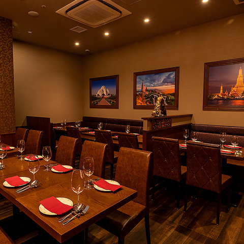 ふかふかのソファ席はゆったりと腰を沈めて寛げる人気の空間です。柔らかな照明と落ち着いた雰囲気が、普段の食事をより特別な時間へと変えてくれます。デートや女子会はもちろん、大切な人との記念日にもぴったり。会話を楽しみながら本格アジアン料理や多彩なドリンクを味わえば、心地よい贅沢さを感じられるひとときをお過ごしいただけます。