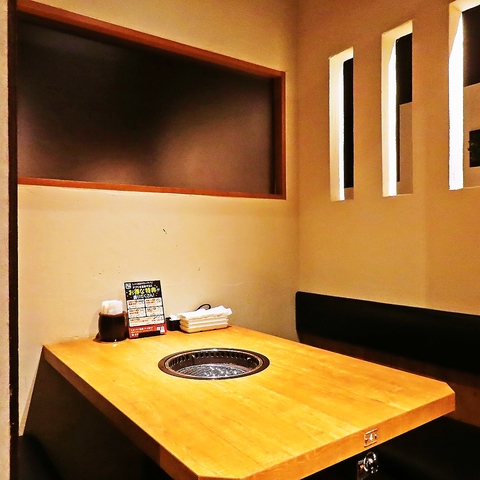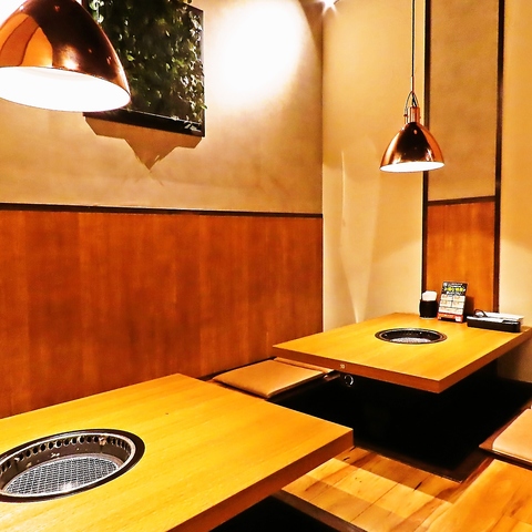隣りを気にせずに食事を愉しめるお席をご用意。居心地も抜群★ご家族やサークル帰りなど、みんなで本格炭火を囲んで焼肉をお楽しみください