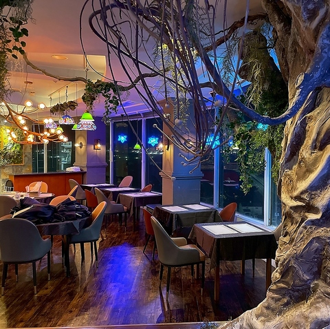 色とりどりのステンドグラスの柔らかな灯りが差し込み、幻想的な影を作り出す光景は、訪れる人の心を優しく包み込みます。都会の喧騒を忘れさせ、まるで秘密の森で過ごすような特別なひとときに。記念日やデートに、幻想的な空間をお楽しみください。
