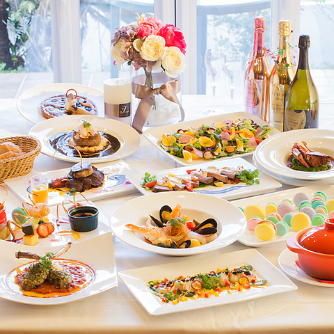 華やかなデザート盛り合わせ付きコースや、パティシエ特製ホールケーキ付きのコースなどご用意しております