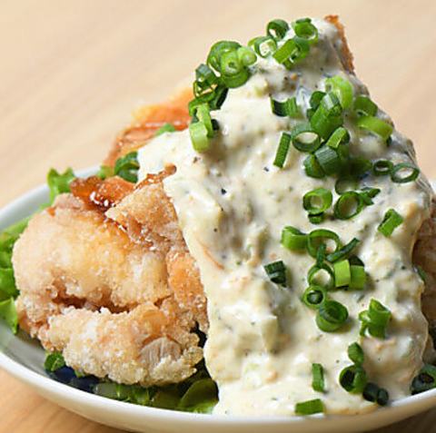 新鮮若鶏のもも1枚に下味をつけて贅沢に揚げたチキン南蛮。甘酢タレと自家製のタルタルソースがやみつきになる逸品です♪